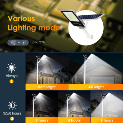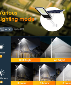 Távirányítóval vezérelhető az üzemidő (3-5-8 óra), a világítási mód (teljes fényerő, fél fényerő), valamint a be- és kikapcsolás.