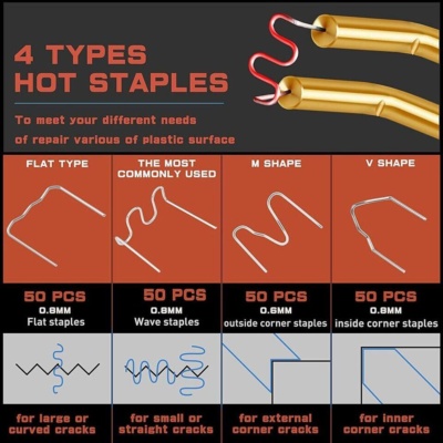 ✅Többcélú illeszkedés: a piacon lévő műanyagok legalább 98%-ának javítása. Tökéletes javítás: lökhárító, műszerfal, lámpatartó, műanyag gyűrű, hűtő, légterelő, fogantyú, fényszórók, műanyag sárvédők, autók és motorok műanyag készülékei stb. a bekapcsológombot, gyorsan melegítse fel 1-2 másodperc alatt, hagyja, hogy a pótszögek lassan beleolvadjanak a műanyag részekbe, hogy a pótszögek ne keresztezzék át a műanyag lemezt a műanyag lemezen. ez a kényelmesebb és biztonságosabb.