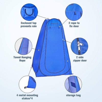 ✨Magánélet és védelem: Ez a sátor biztosítja a magánéletet és védelmet zuhanyzás vagy ruhacsere közben a szabadban. Teljes fedettséget nyújt, megakadályozva a kíváncsi tekinteteket, és komfortos teret biztosít.