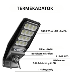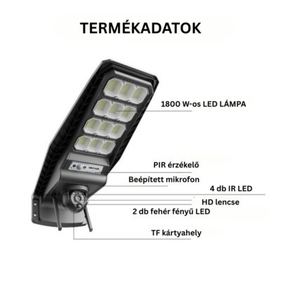 1800 W-os napelemes utcai lámpa beépített CCTV kamerával (INGYENES SZÁLLÍTÁS)