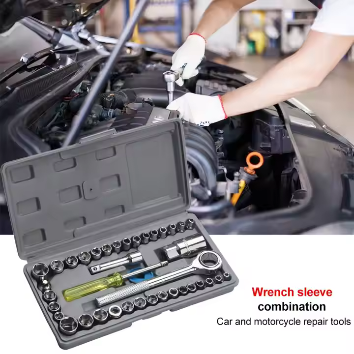 ✔️Könnyen használható szűk helyeken, és egy tárolódobozsal együtt szállítjuk és tároljuk. A 46 részes autójavító szerszámkészlet dugókulcsokat, racsnis kulcsokat, imbuszkulcsokat és egyéb szerszámokat tartalmaz.