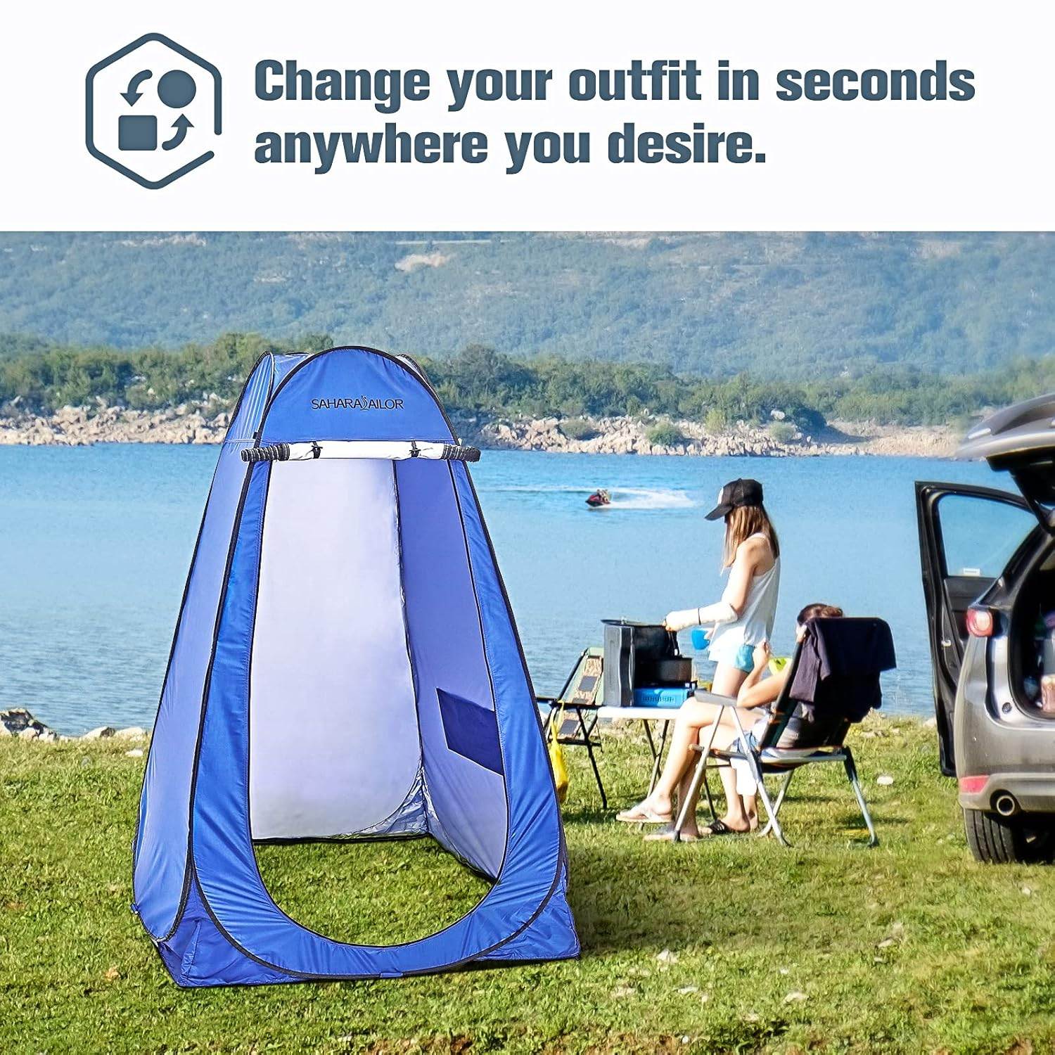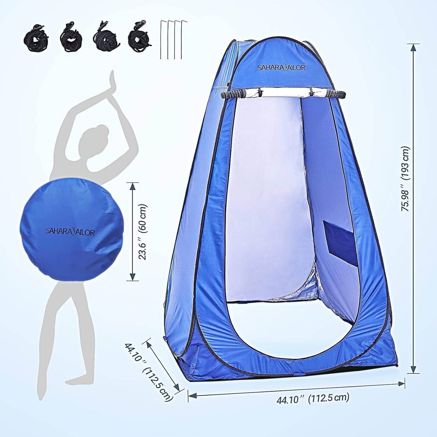 ✨Magánélet és védelem: Ez a sátor biztosítja a magánéletet és védelmet zuhanyzás vagy ruhacsere közben a szabadban. Teljes fedettséget nyújt, megakadályozva a kíváncsi tekinteteket, és komfortos teret biztosít.