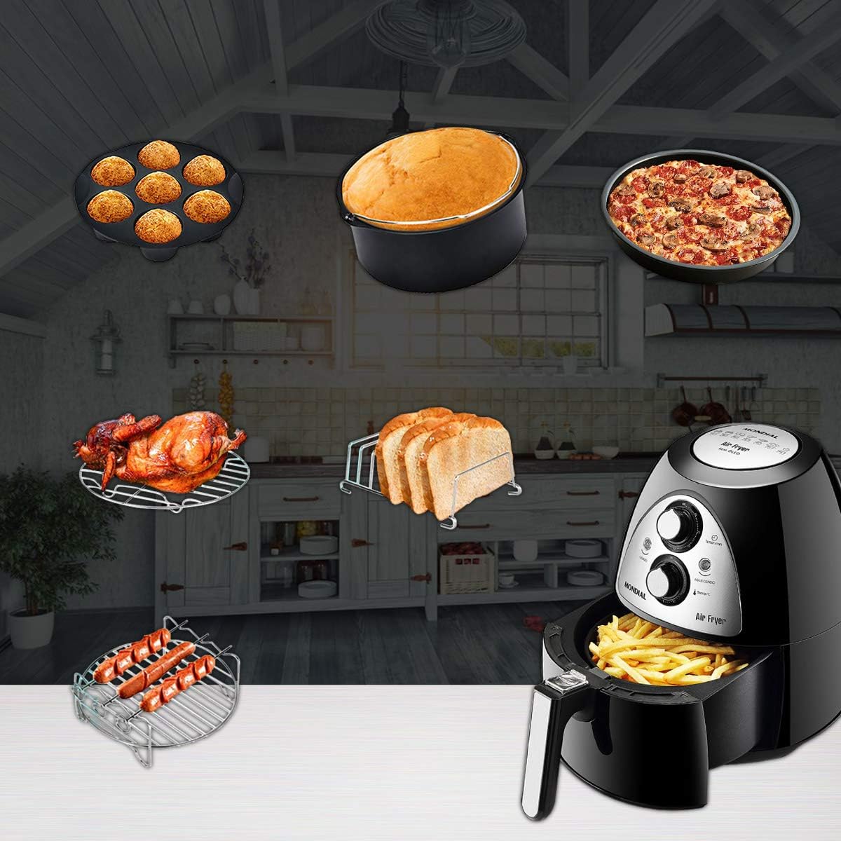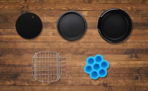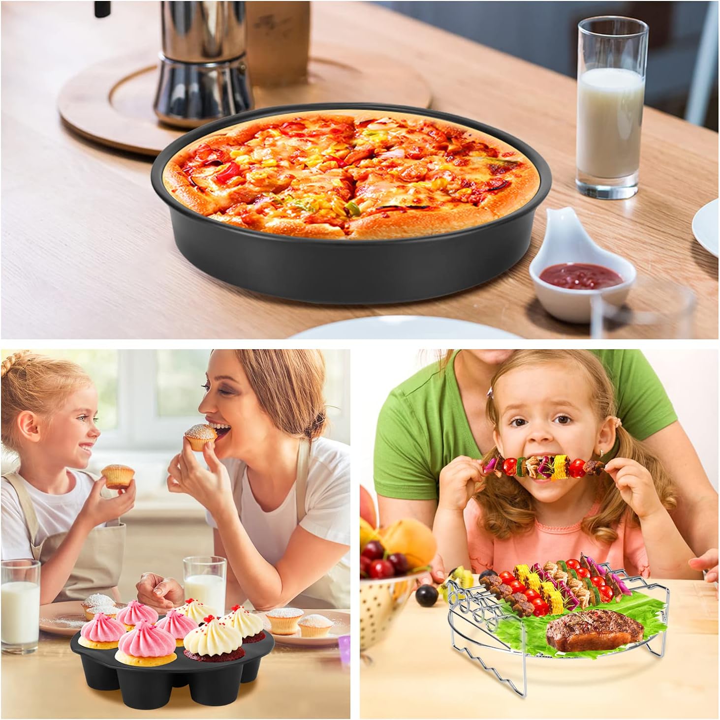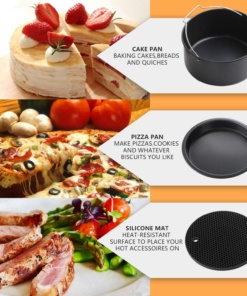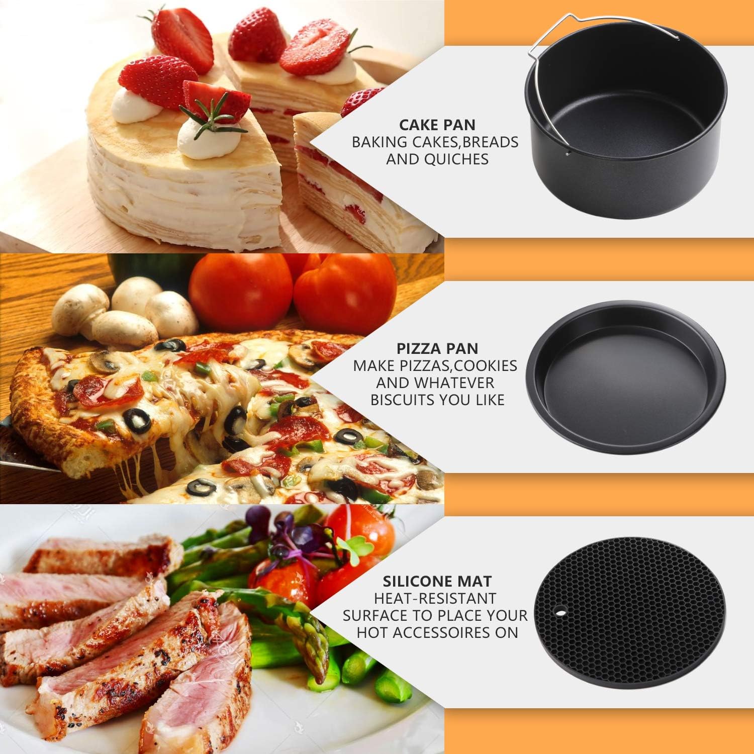 💗Ez a 7 db készlet tartalmaz 1 tortahordó, 1 pizza serpenyő, 1 szilikon szőnyeg, 1 fém tartó, 1 nyárs rack, 1 kenyértartó, és 1 torta szilikon pot. A 8in légsütő tartozékkészlet minden 4.8QT-6.3QT légsütőhöz illeszkedik.