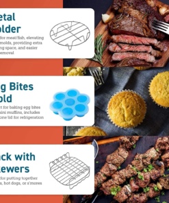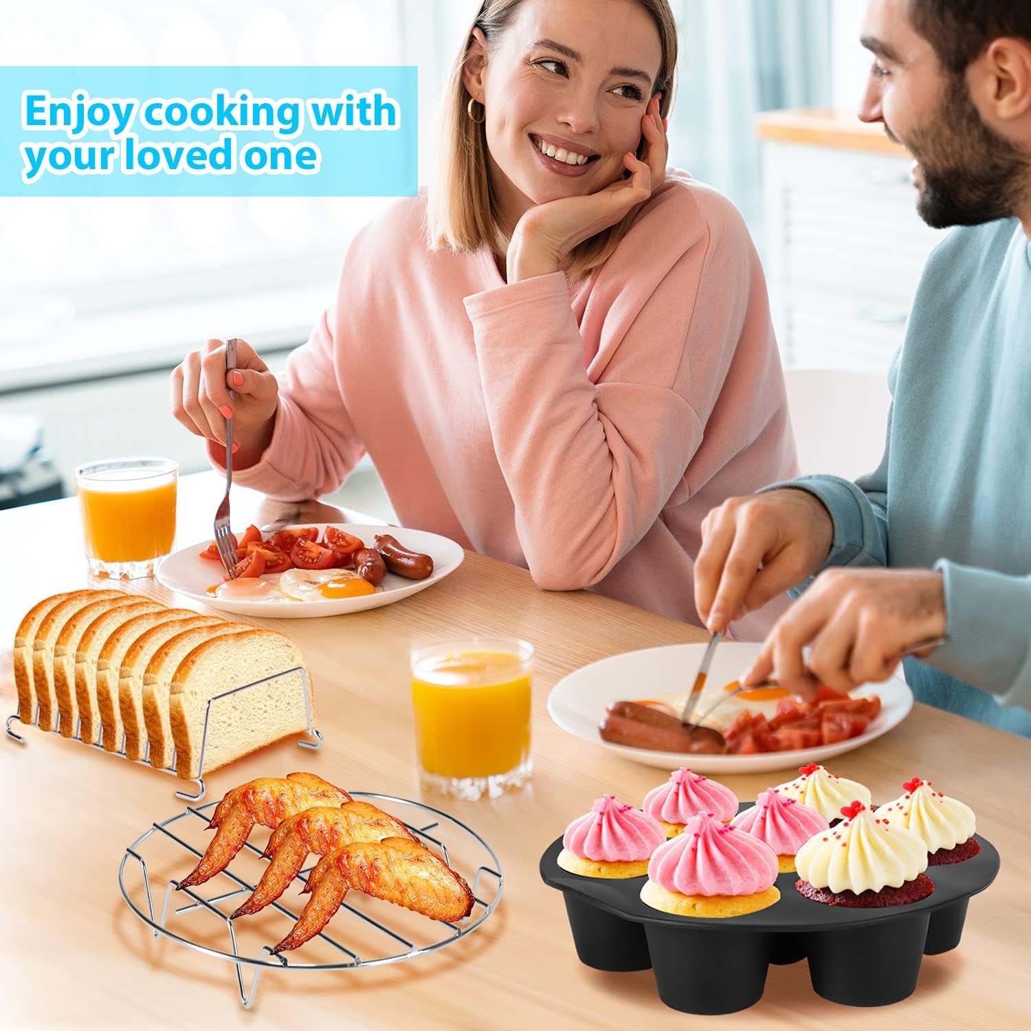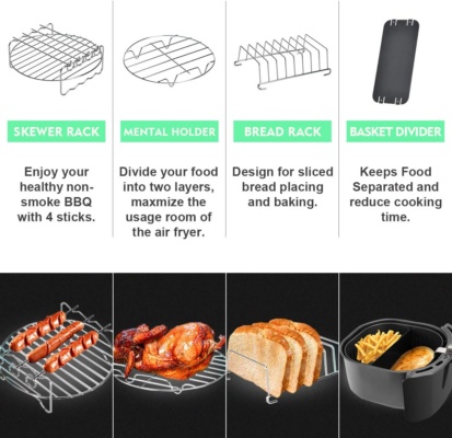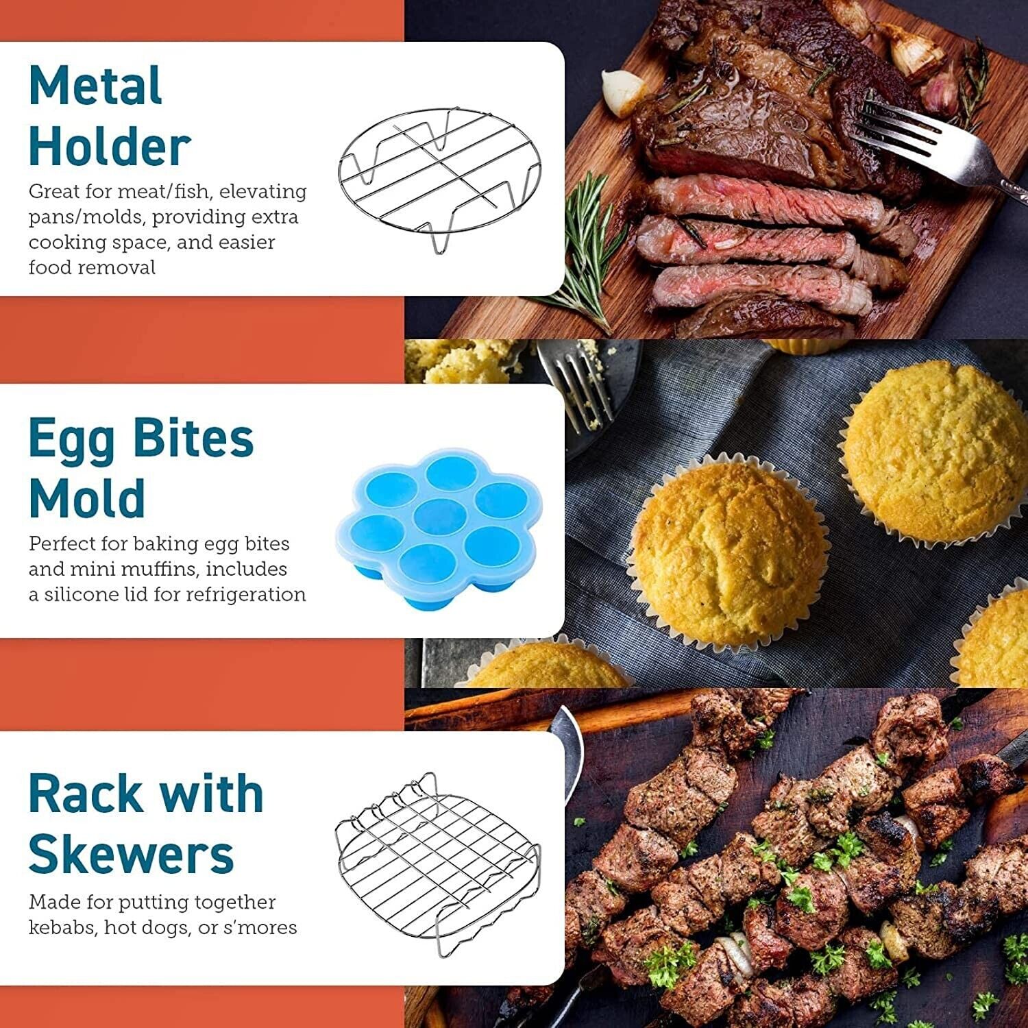 💗Ez a 7 db készlet tartalmaz 1 tortahordó, 1 pizza serpenyő, 1 szilikon szőnyeg, 1 fém tartó, 1 nyárs rack, 1 kenyértartó, és 1 torta szilikon pot. A 8in légsütő tartozékkészlet minden 4.8QT-6.3QT légsütőhöz illeszkedik.
