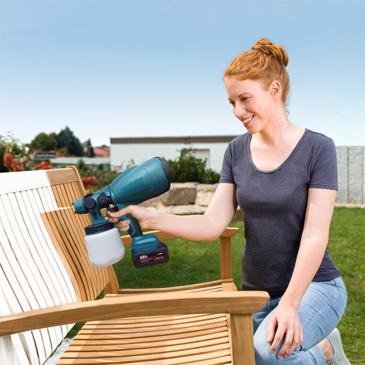 ✨Vezeték nélküli kialakítás – Ez a hordozható festékszóró pisztoly megbízható áramforrást biztosít anélkül, hogy aggódnia kellene a kábelek és a konnektorok miatt, amelyek nem érik el a munkaterületet. A permetezés kényelmét beltéren és kültéren egyaránt élvezheti.