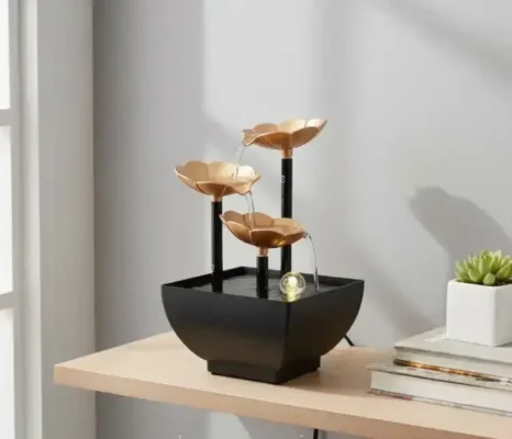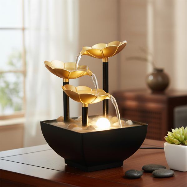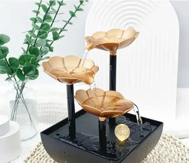 ⛲Dekoratív: 3-szintes vízesés-dizájnjának köszönhetően gyönyörű és szemet gyönyörködtető. A jól megtervezett matt textúrájú alap még fejlettebbé teszi a modern beltéri szökőkút-díszeket.