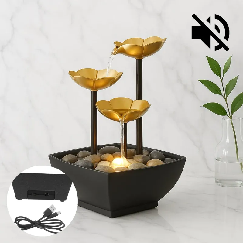 ⛲Tartós anyagok: A beltéri vízesés-szökőkút prémium műanyagból, ami biztosítja az asztali szökőkút tartósságát.