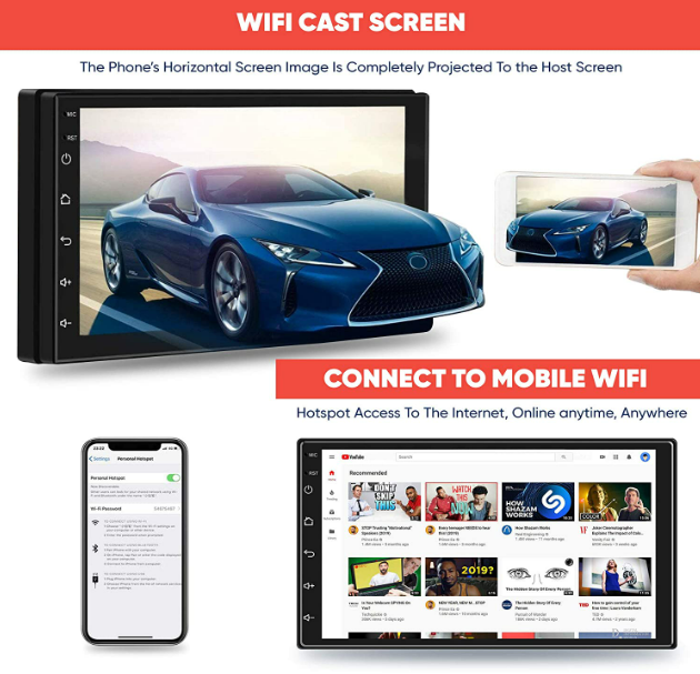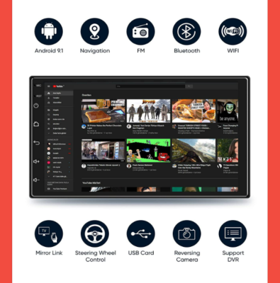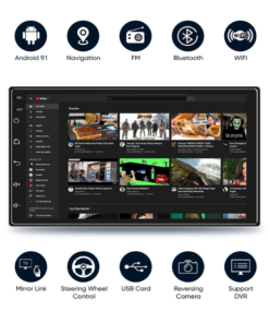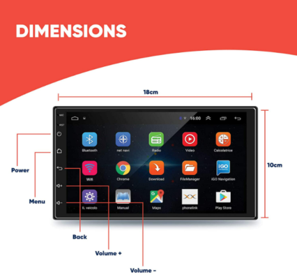 ✔️ANDROID 10,0 rendszeren alapuló fejegység GPS (navigációs) modullal, WiFi modullal, 7 hüvelykes 1024×600 pixeles felbontású érintőképernyős LCD kijelzővel, 2x USB bemenettel van felszerelve.