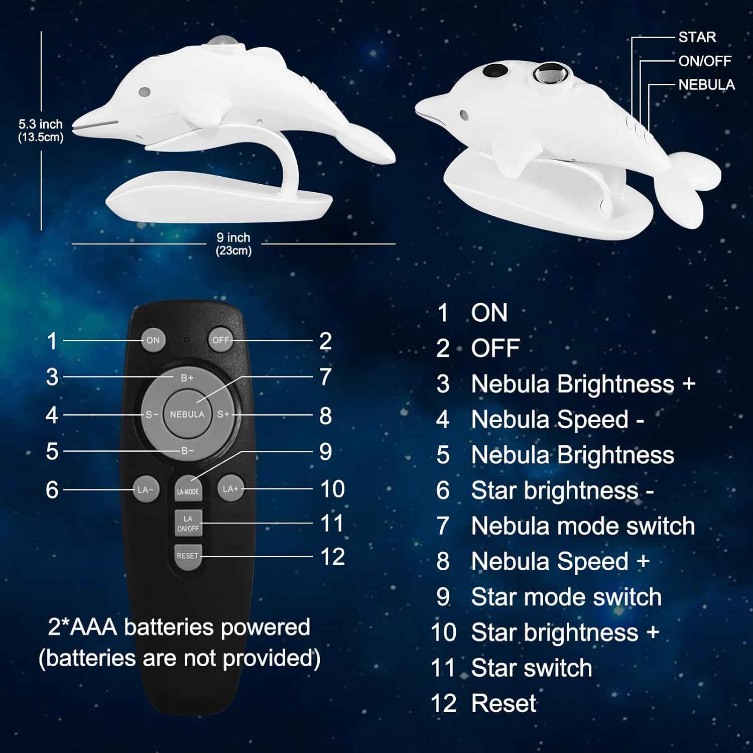 ⭐ Kényelmes megoldás a távirányítóval történő vezérlés – lehetővé teszi a projektor be- és kikapcsolását, a világítási módok megváltoztatását a pihenő megszakítása nélkül.