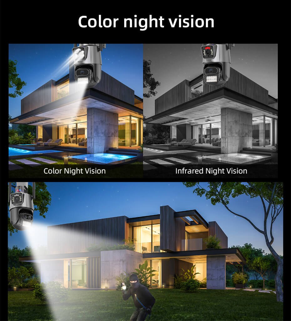 📷Ha a fehér LED lámpa világít, a kamera színes látást jelenít meg éjszaka, és három éjszakai mód közül választhat.