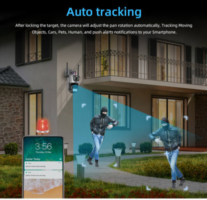 📷Ha valaki áthalad a riasztási területen, a kamera érzékeli a személy mozgását. És nyomon követni az embereket.