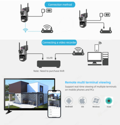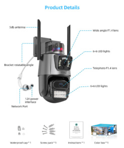 📷Dupla lencsés 8MP Wifi biztonsági kamera vízálló CCTV videó megfigyelő kamera Alarm fényjelző IP kamera