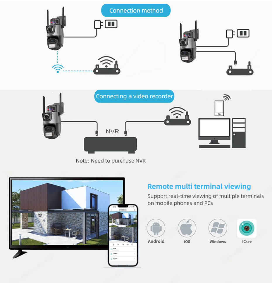 📷Vízszintesen 355°-ban és függőlegesen 90°-ban elforgatható. Közvetlenül az APP-ban vezérelheti, amikor csak akarja, bárhol is van.