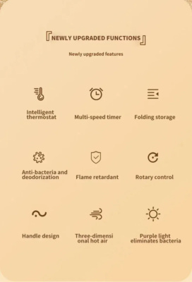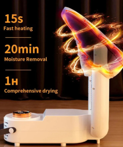 Tartsa cipőit szárazon, fertőtlenítve és viselésre kész állapotban bármely évszakban a elektromos szárítógéppel, amely fejlett 360°-os forró levegős szárítási funkciókkal, UVC sterilizálással és automatikus kikapcsolás időzítővel van felszerelve. Kompakt kialakításának, 150 W teljesítményének és intelligens hőmérséklet-szabályozó rendszerének köszönhetően ideális cipők, csizmák vagy sportcipők napi szárítására, azok károsítása nélkül.