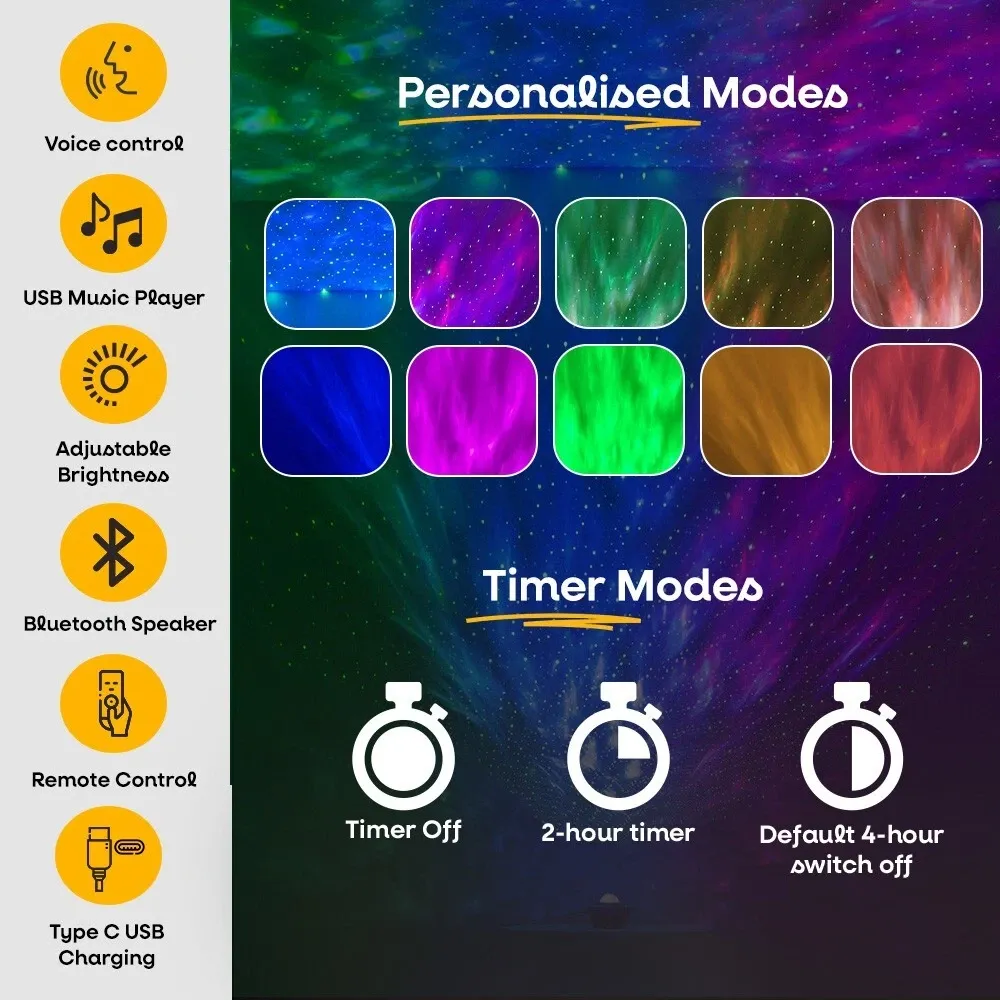 ✅A 4 színű (kék/fehér/zöld/piros) lámpával ellátott projektor 10 sokszínű kombinációt alkot, miközben a csillagfény folyamatosan égve tud maradni. Az “Ocean Wave” móddal a fény és a csillagok együtt dolgoznak, és akár 21 vetítési módot is elérhetnek. Úgy érezheti magát, mintha a csillagok között sétálna. Az USB porton keresztül akár power bankot is csatlakoztathat. A kívánt hatás eléréséhez helyezze az éjszakai fényt a megfelelő pozícióba.