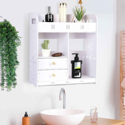 ☑️Tér az elrejtéshez és megjelenítéshez – Nyitott polc a gyakran használt cikkek számára, szekrény olyan tárgyak tárolására, mint a piperecikkek és hajápoló termékek – ez a 37х18×43 см-es fali szekrény kéznél tarthatja a tárgyakat, de megőrzi a rendezett megjelenést.