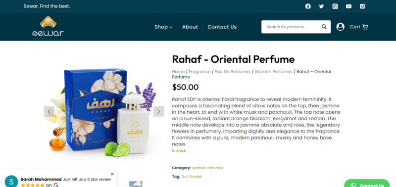 💕A Rahaf egy olyan illat, amely harmonikusan ötvözi a friss és virágos fejjegyeket a középső jázmin édességével és érzékiségével, valamint az alap meleg és fás árnyalataival. Ez a bájos kombináció elkápráztatja érzékeit, és elegáns és nőies aurába burkol.