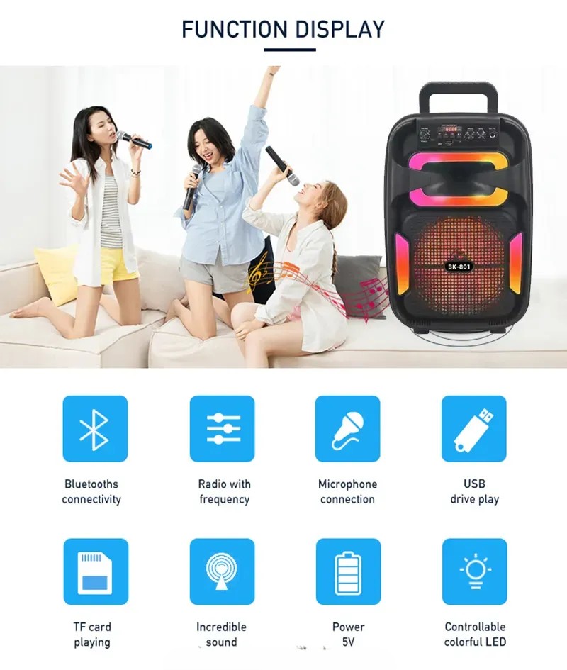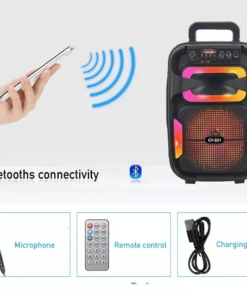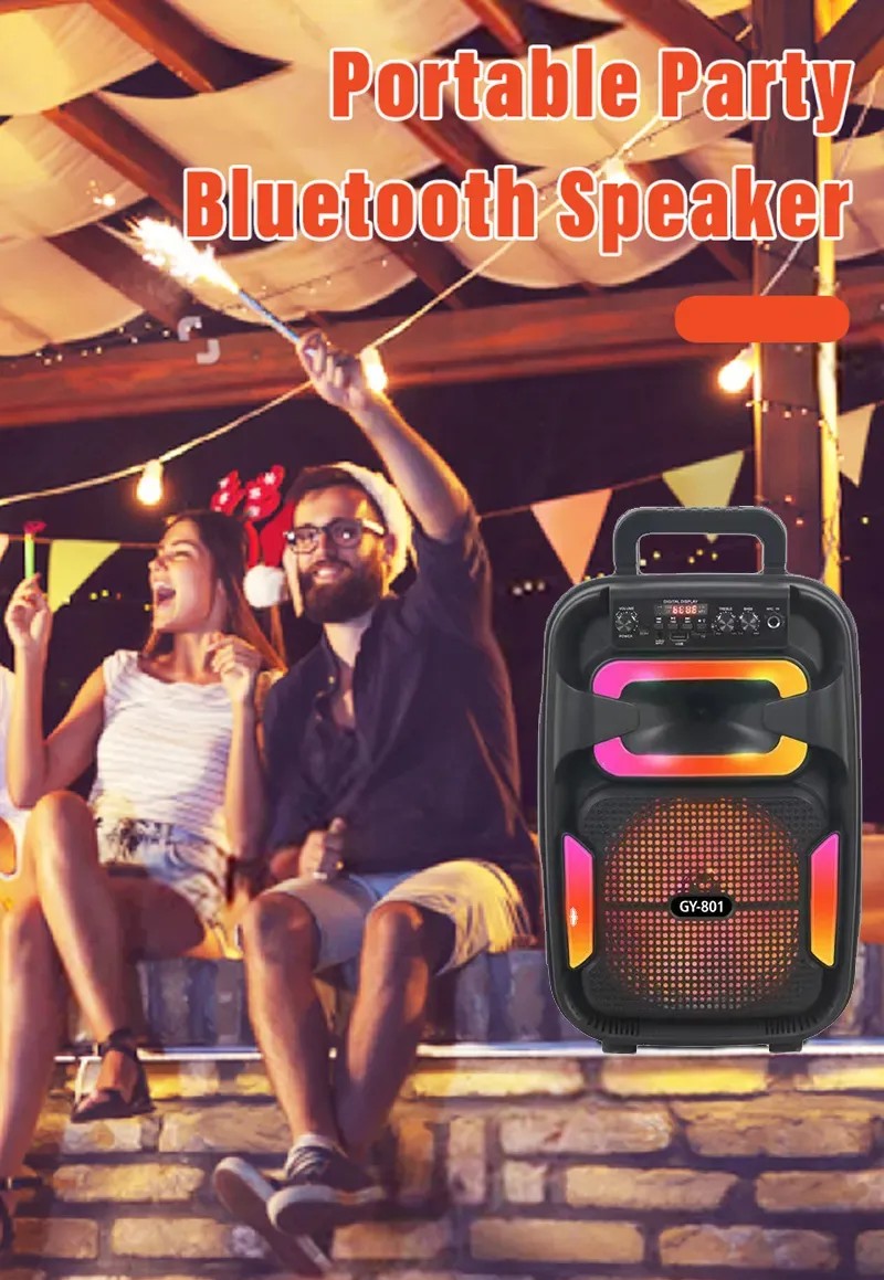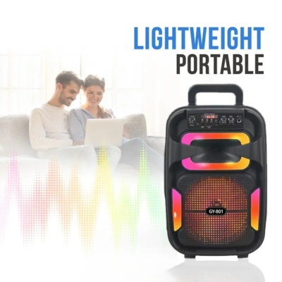 A GY-801 Bluetooth hangszóró tökéletes választás házibulit, kerti partit, vagy akár egy laza baráti összejövetelt szeretnél feldobni. A kiváló hangminőség, a látványos fények, a karaoke funkció és a sokoldalú csatlakoztathatóság garantálja, hogy mindenki jól fogja érezni magát.