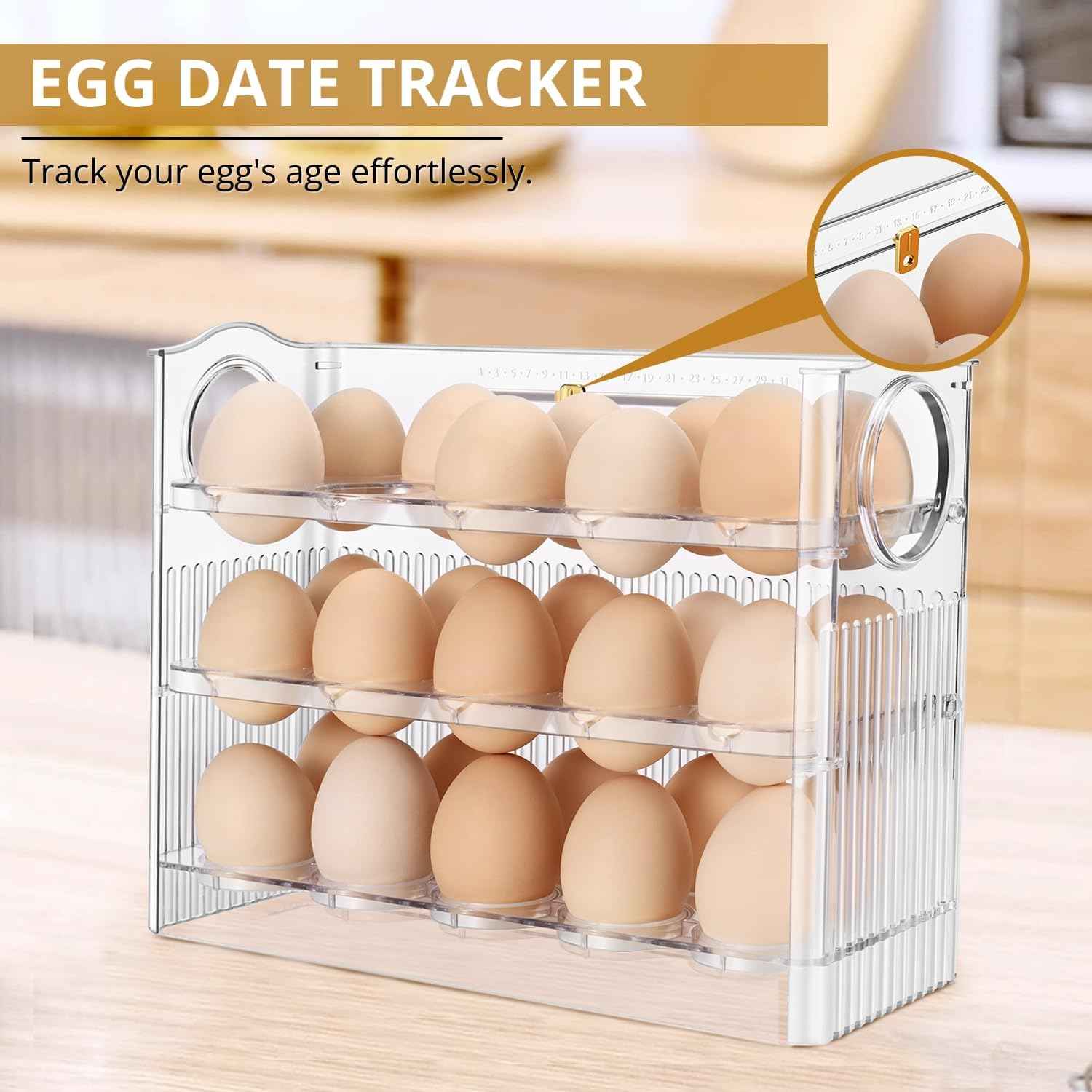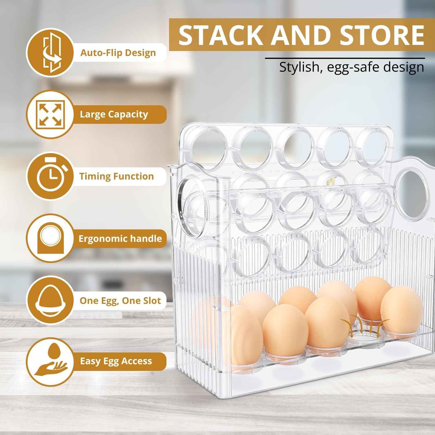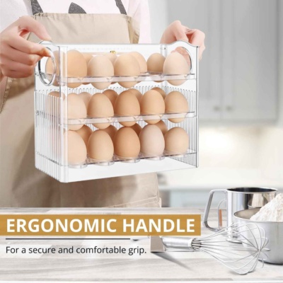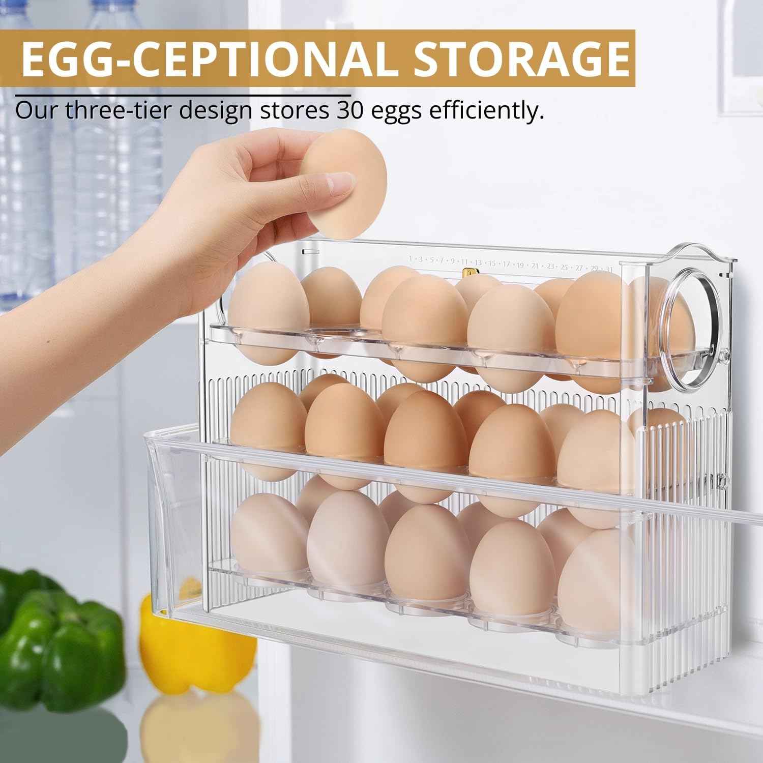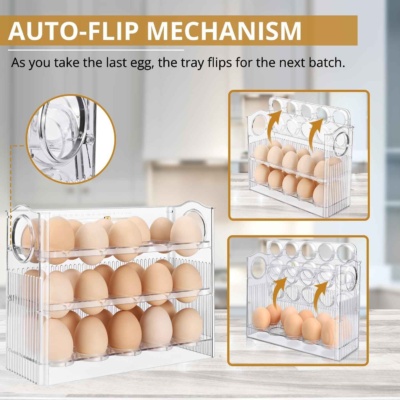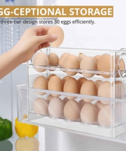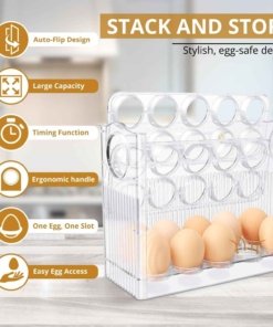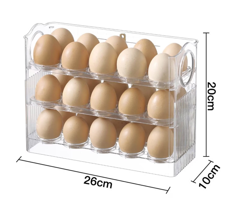 🍳Ezt az állványt tökéletesen használhatod tojáshoz. Összesen 30 tojás fér el benne, 10 db egymás után. Az állvány emelhető felső szinttel rendelkezik, aminek köszönhetően a következő emeletre lehet feljutni. Az állvány elhelyezhető mind a konyhapulton, ahol szinte nem foglal helyet, mind a kamrában, vagy akár hűtőbe is helyezhetjük. Elfér az ajtóban lévő polcban. Mindenhol sok helyet takarít meg. A gyönyörű átlátszó dizájn csak hangsúlyozza praktikumát.