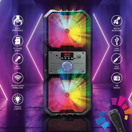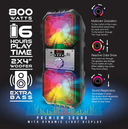 🔊Az eredeti vizuális effektusokkal rendelkező beépített LED-ek lenyűgözik minden vendégedet, és egyedi atmoszférát teremtenek. Legyen szó buliról, kerti grillezésről vagy akár piknikről, a hangszóró látványa magával ragadja a közönséget.