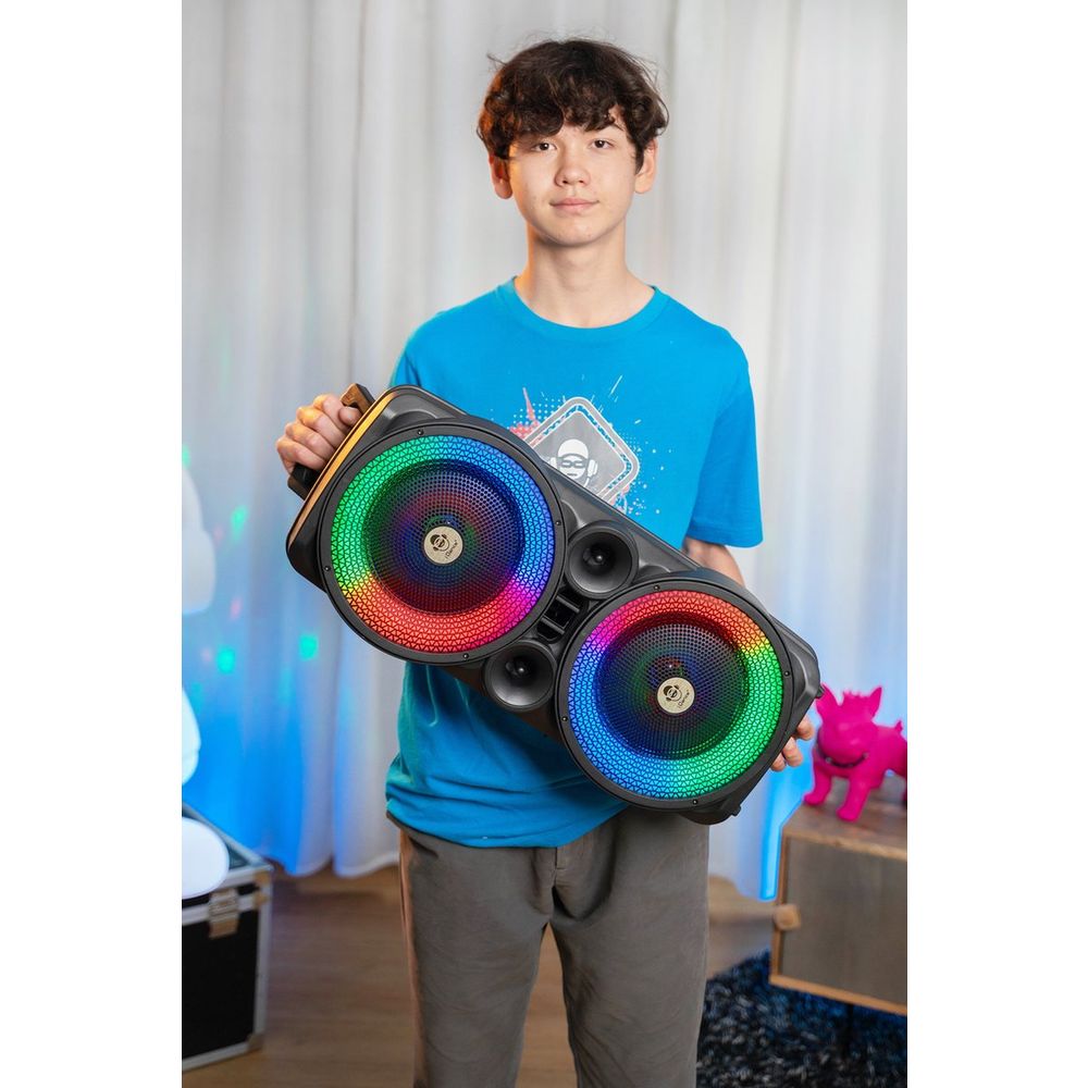 🔊A 2 db 8 hüvelykes átmérőjű hangszóróval a troller típusú hangszóró bármilyen szögben elhelyezhető, külön összeszerelés nélkül.
