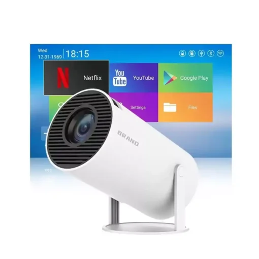 HY300 4K hordozható projektor, Android 11, WiFi 2.4G/5G/BT4.1, 1280 x 720 HD felbontás, 1080P támogatás, LED, HDMI, USB, hang, tükrözés Android/IOS, 180˚ forgatás, távirányító mellékelve, fehér színben