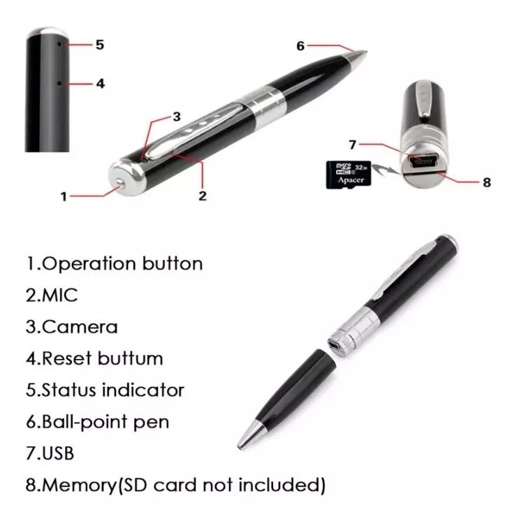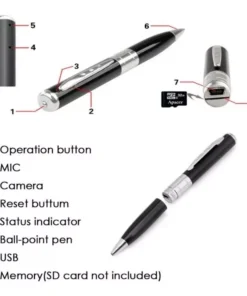 💯Ez az eszköz elsősorban az álcázása miatt előzte meg a konkurenciót. Valójában úgy néz ki, mint bármely más közönséges toll, de videófelvételeket hanggal vagy fényképeket rögzíthet.
