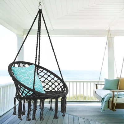 Nemcsak dekoratív, hanem rendkívül kényelmes fonott kerti függőszék, mely szinte biztosan kedvence lesz az egész családnak.