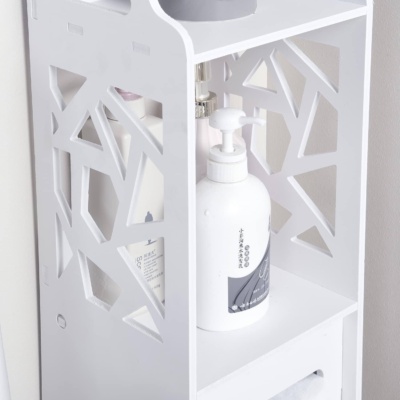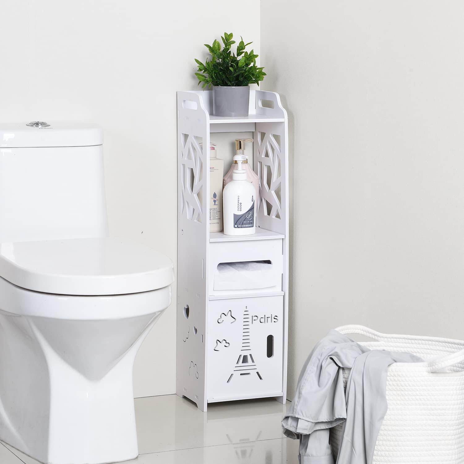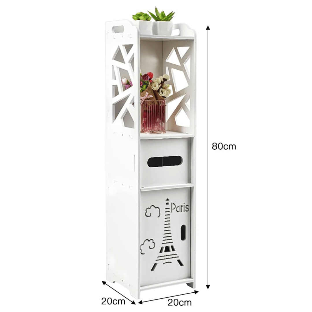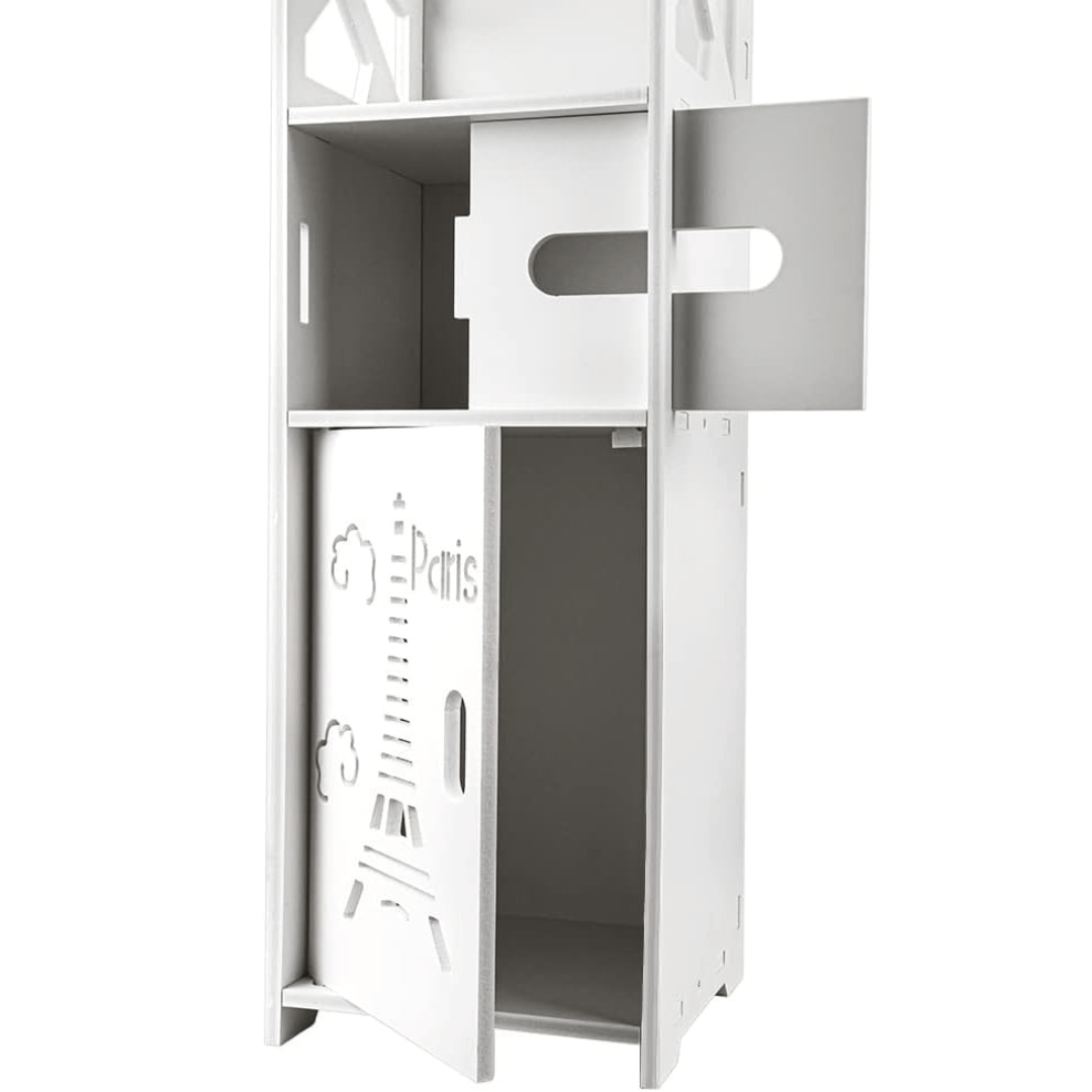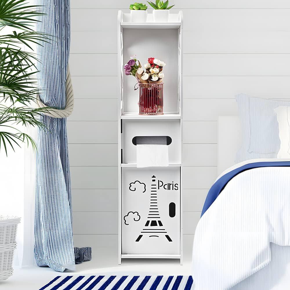 ✅ Fehér fürdőszobai tárolószekrényünk WC-papír tartóval tökéletes megoldás a fürdőszoba rendben tartására, miközben egy csipetnyi eleganciát ad hozzá. Ez a funkcionális állvány tökéletesen alkalmas különféle fürdőszobai kiegészítők tárolására, beleértve a szappanokat, samponokat, törölközőket és természetesen a WC-papírt.