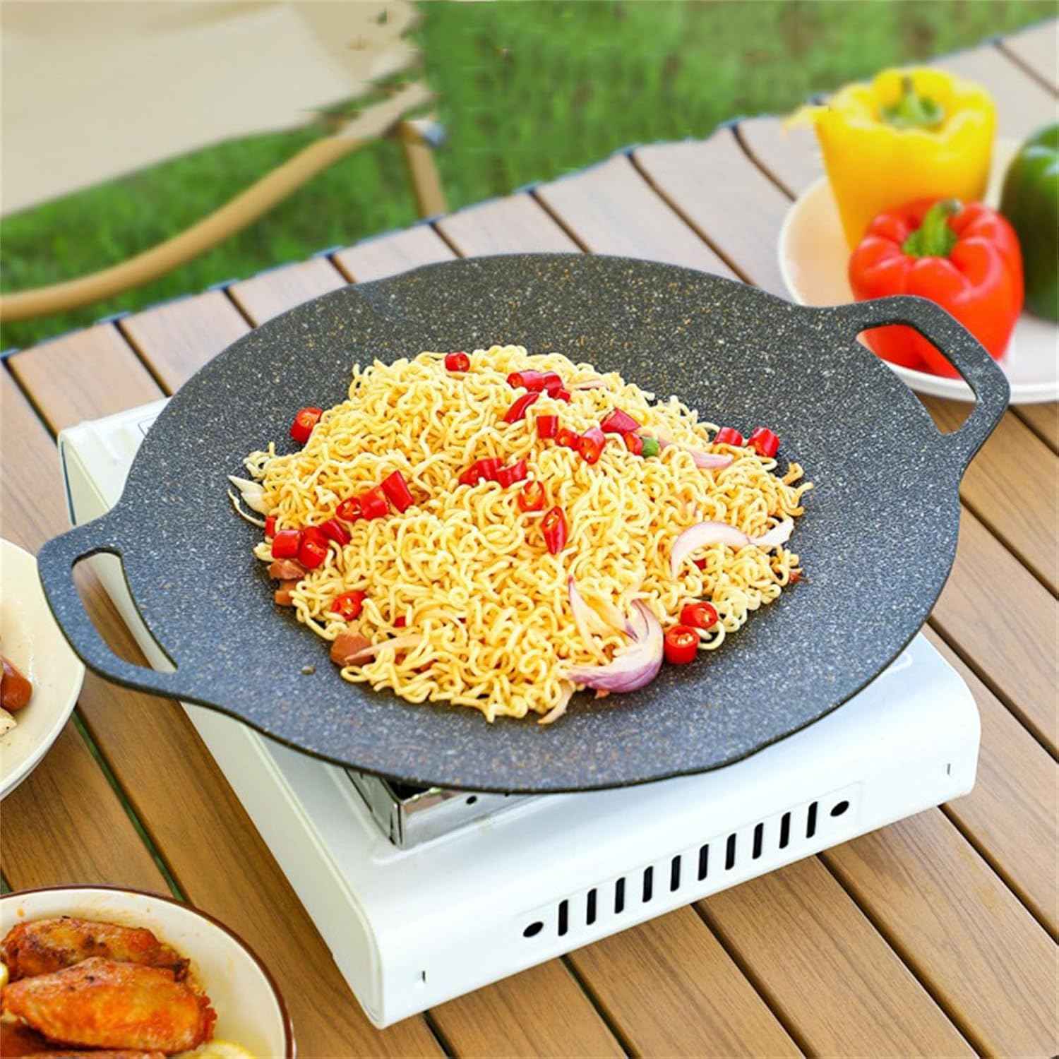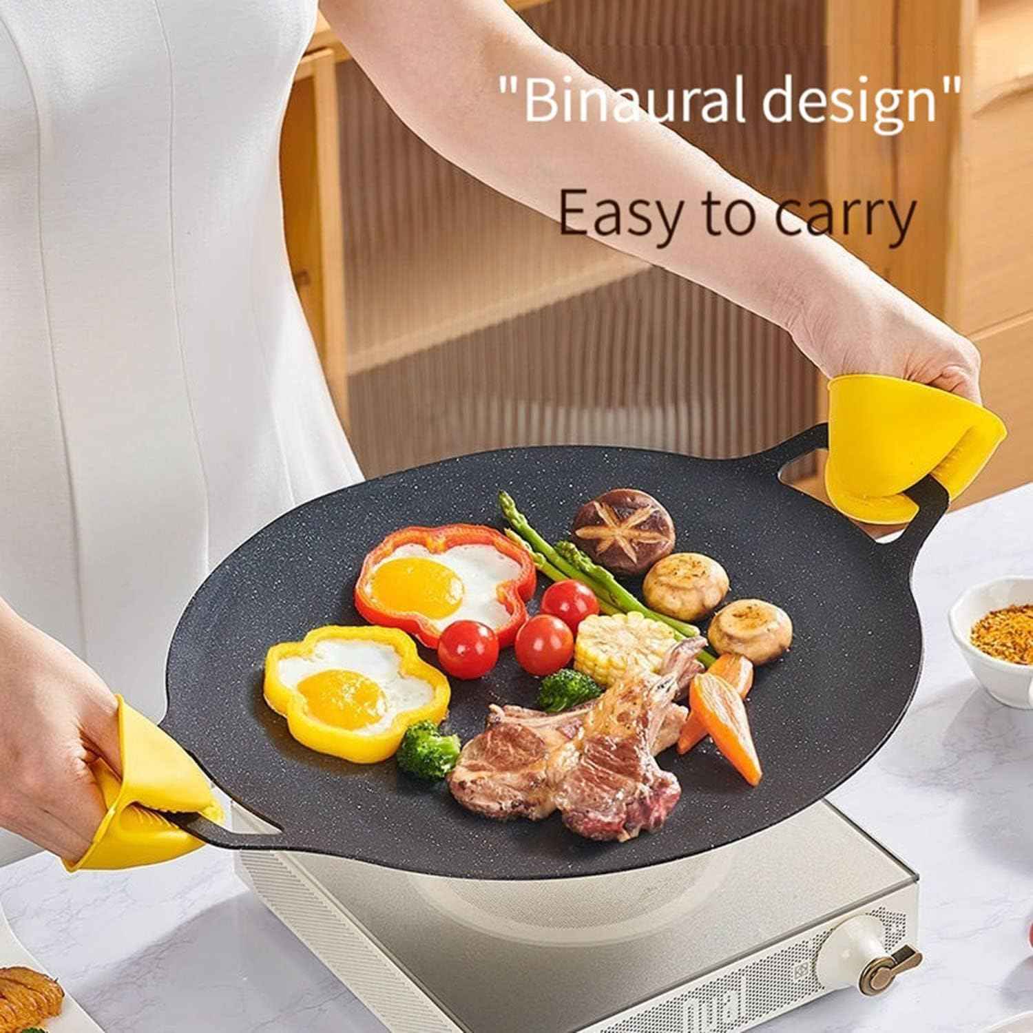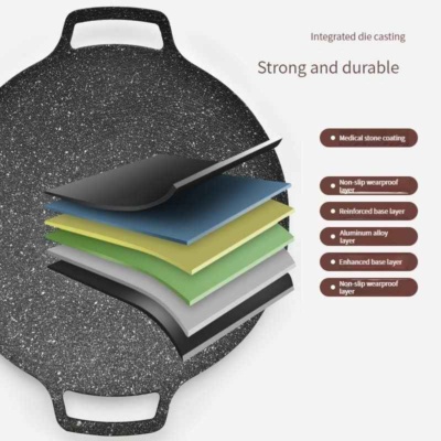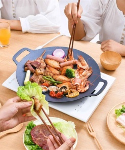 Akár húst és zöldségeket süt, akár ínycsiklandó rizsételeket készít, koreai kerek grillserpenyőnk kihagyhatatlan konyhai eszköze.