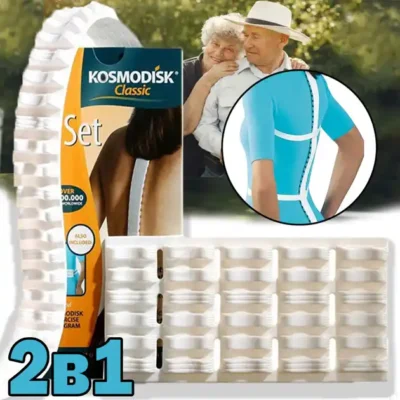A KOSMODISK egy klinikailag tesztelt eszköz, amelyet szakértők fejlesztettek ki a gerinc és a hát fájdalmának enyhítésére, megszüntetésére. A hatásvizsgálatok kimutatták, hogy segítségével a hátfájás akár 80%-kal csökkenthető. A KOSMODISK a fájdalom központjára hat, így enyhítve a kellemes érzést, miközben Ön dolgozik, sportol vagy éppen pihen. A KOSMODISK emellett sikeresen kombinálható más, hagyományos vagy alternatív terápiás módszerekkel is. A KOSMODISK hatékonysága formájában rejlik, így használatához nincs szükség semmilyen segédeszközre,működtetése nem igényel elemet vagy más energiaforrást. A KOSMODISK hipoallergén műanyag bordáit úgy alakították ki, hogy tökéletesen illeszkedjenek az Ön gerincének formájához. Ezen pontok kiképzésüknek köszönhetően enyhe nyomást gyakorolva ugyanúgy megtámasztják és masszírozzák az Ön gerincét, mint a csontkovács vagy a masszőr ujjai.