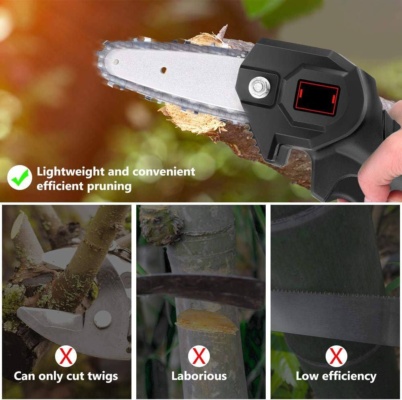 ✅Hatékony vágás : A mini láncfűrész éles lánca eléri az 5 m/s sebességet, könnyedén elvágva akár 12 cm átmérőjű fát mindössze 8 másodperc alatt.