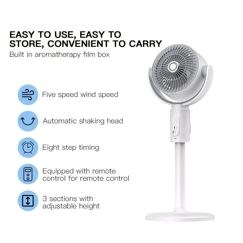 Légkeverő ventilátor DC motor technológiát használ a 3D háromdimenziós légáramlás biztosítására, hatékonyan javítva a beltéri légkonvekciót, egyensúlyozva a szobahőmérsékletet és elősegítve a friss levegő beáramlását. 5 fokozatú szélbeállítási lehetőséget és különféle légmódokat kínál a különböző felhasználási forgatókönyvekhez. Sokoldalú kialakítása, amely álló- és toronyventilátorként is működik, automatikus oszcillációval kombinálva biztosítja a levegő teljes körű keringését a házban, kényelmes és egészséges otthoni környezetet teremtve.