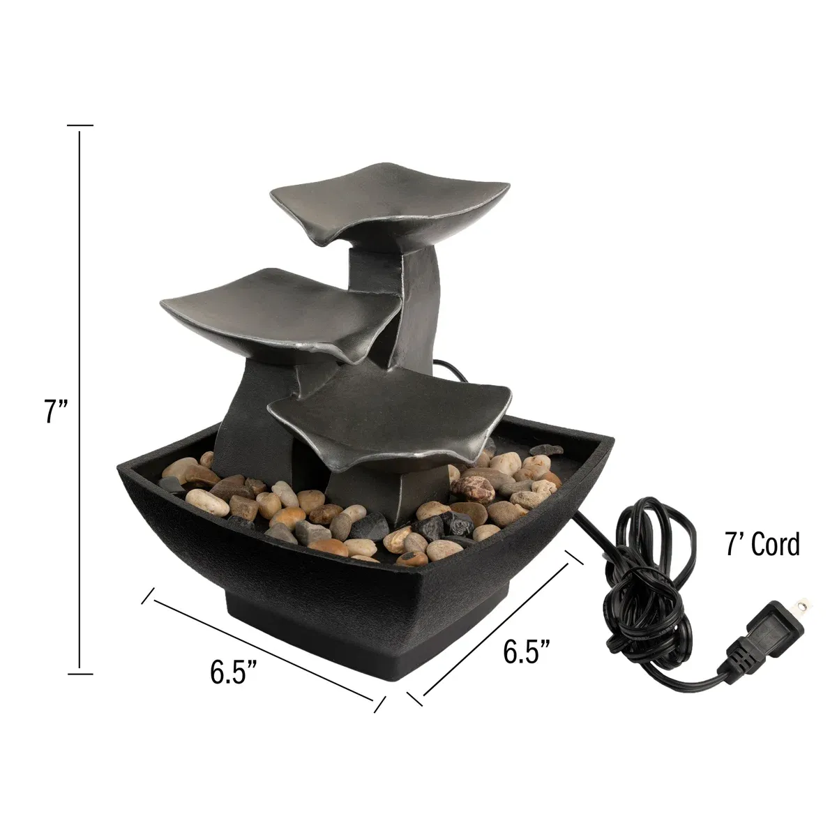 ⛲Dekoratív: 3-szintes vízesés-dizájnjának köszönhetően gyönyörű és szemet gyönyörködtető. A jól megtervezett matt textúrájú alap még fejlettebbé teszi a modern beltéri szökőkút-díszeket.