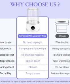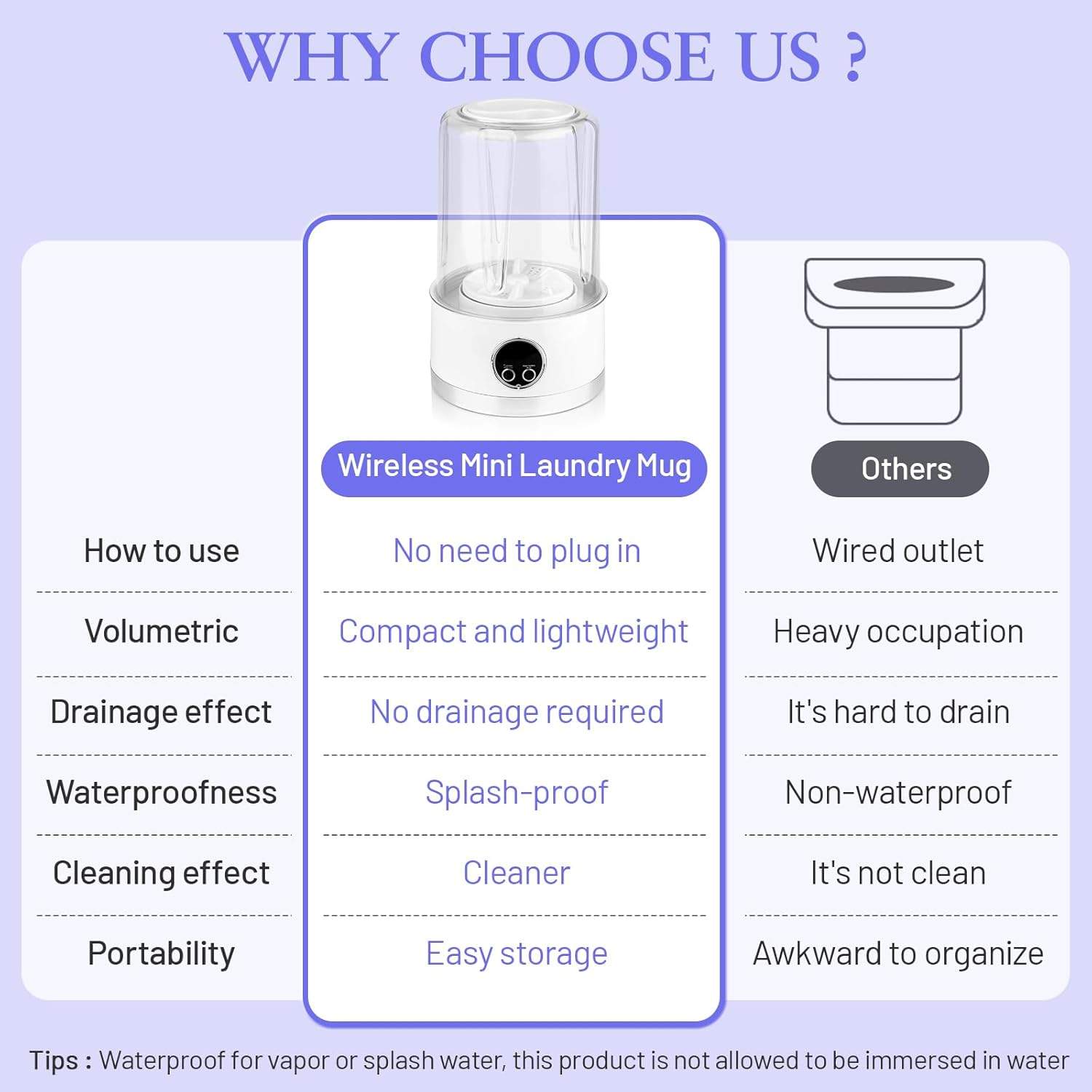 🧼Vezeték nélküli és hordozható: ez a mini mosógép nem kell megérinteni a tápkábelt, amely vezeték nélküli, amely bármikor és bárhol kényelmesen használható, nem korlátozza az áramellátás, például utazás, kempingezés vagy családi kirándulás során.