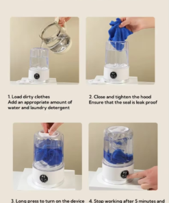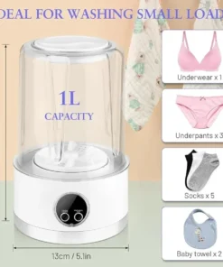 🧼1L kapacitás: A mosógép 1L mosási kapacitással rendelkezik, amely alkalmas kis mennyiségű ruha vagy kis ruhadarabok, például alsónemű, fehérnemű, zokni stb. mosására, hogy megfeleljen a felhasználó napi igényeinek a kis mennyiségű mosáshoz.