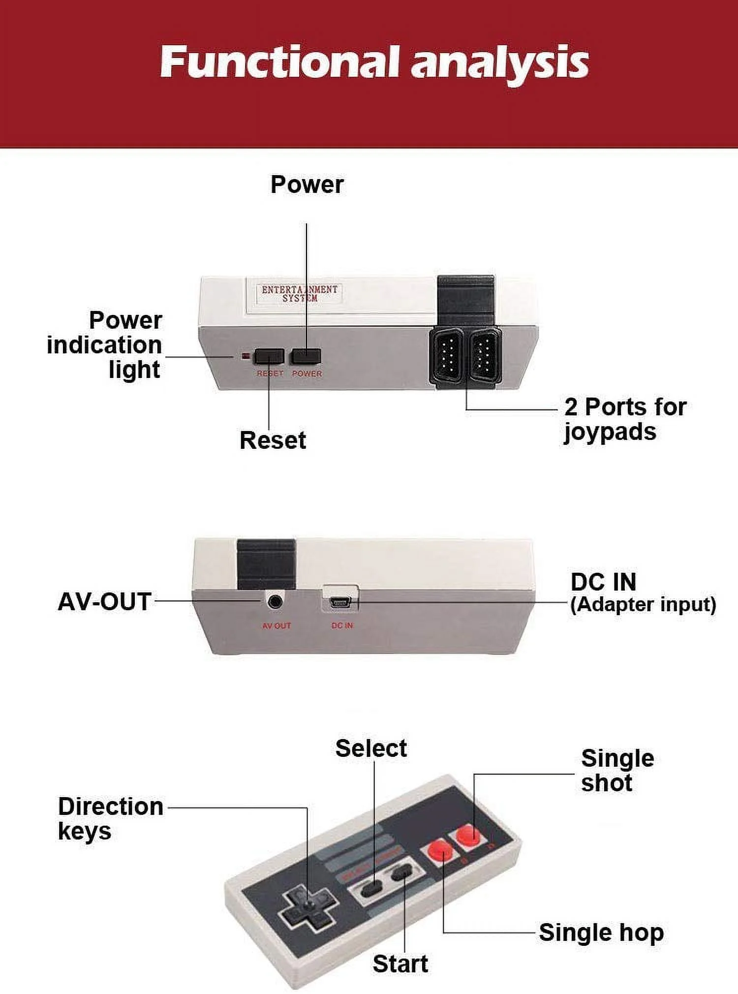 🕹️Ergonomikus kialakításának köszönhetően precíz, könnyen konfigurálható gombokkal rendelkezik, és a kanapéról élvezheti a játékot. Könnyedén csatlakoztathatja a konzolt a TV-hez, így nagyobb képernyőn játszhat. Egyszerűségének és kényelmes használatának köszönhetően a gyerekekkel együtt élvezheti a konzolt, a klasszikus játékok nem jelentenek veszélyt a fejlődésükre.