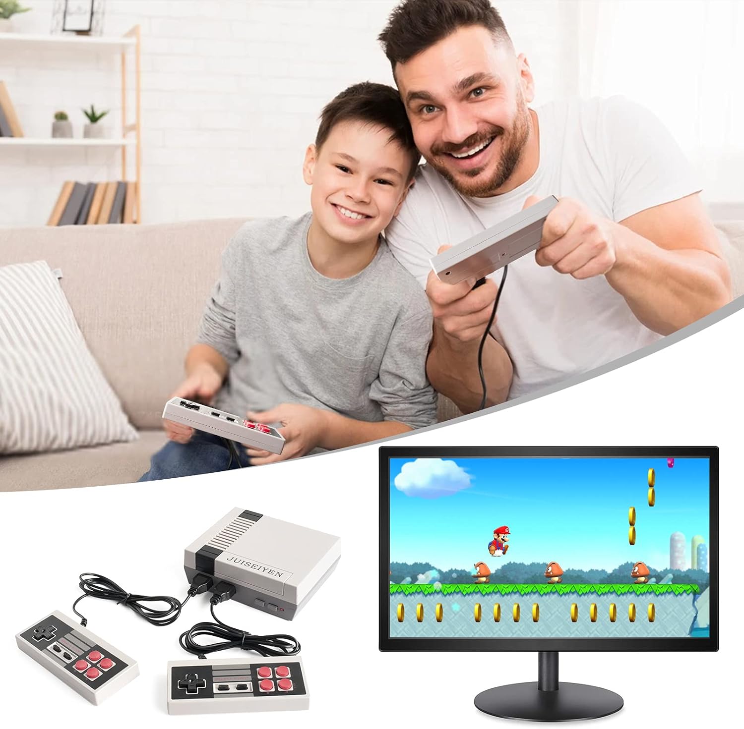 🕹️Játszhat olyan klasszikus játékokkal, mint: Super Mario Bros., Donkey Kong, The Legend of Zelda, PAC-MAN, Dr. Mario, Mega Man, Final Fantasy és még sokan mások. Ez a játékkonzol ideális ajándék azoknak, akik nosztalgiáznak ezekre az évekre.
