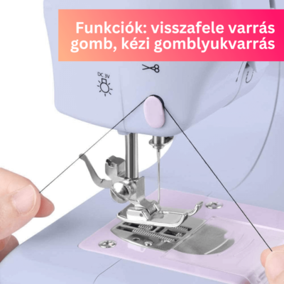 ➡️Funkciók: visszafele varrás gomb, kézi gomblyukvarrás