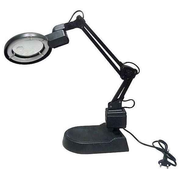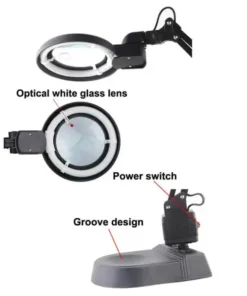 Asztali lámpa – A 2 az 1-ben lámpával és állvánnyal ellátott nagyító nehéz talppal és C-alakú bilinccsel.