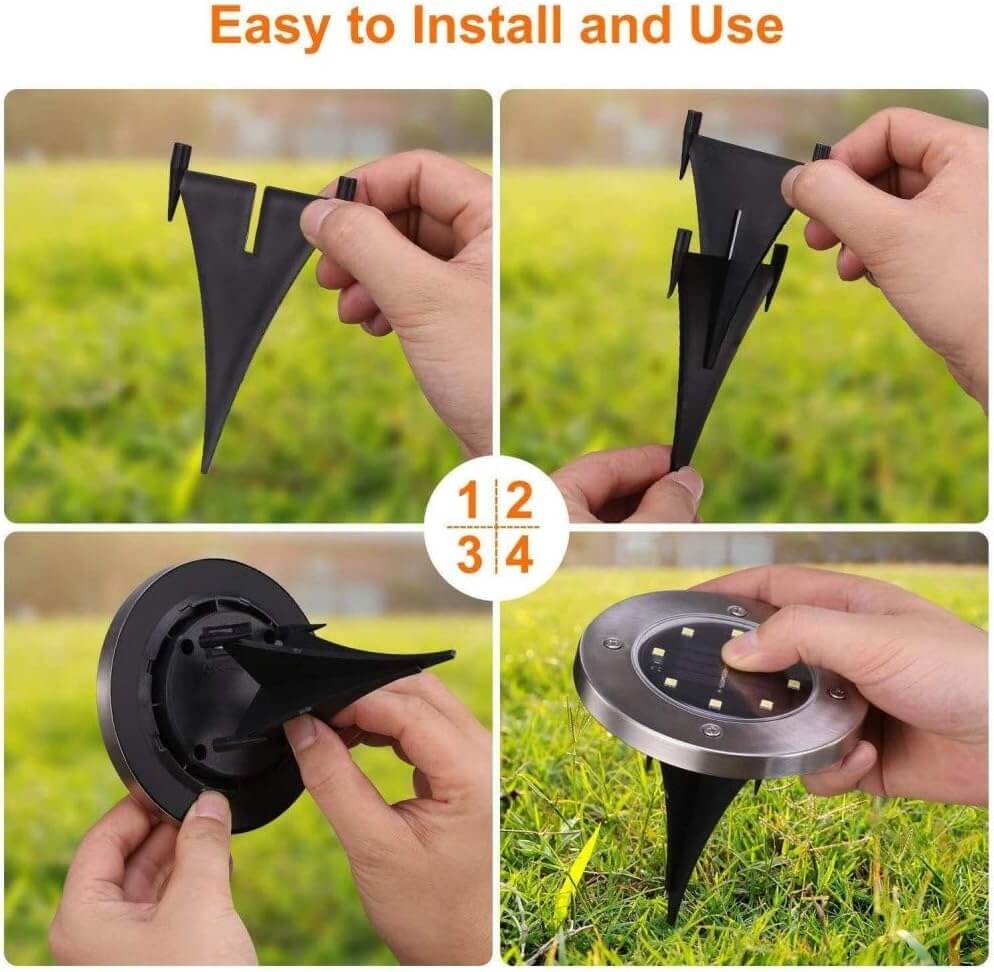 - Szerelje fel őket megfelelően: Gondosan kövesse a gyártó utasításait, hogy megbizonyosodjon arról, hogy a 8 LED-es napelemes földi lámpák megfelelően vannak felszerelve. Ez magában foglalhatja a lyukat ásni a földbe, a lámpát a helyre helyezni, és letakarni földdel vagy kaviccsal. Ügyeljen arra, hogy a lámpát olyan helyre tegye, ahol napközben sok közvetlen napfény éri.