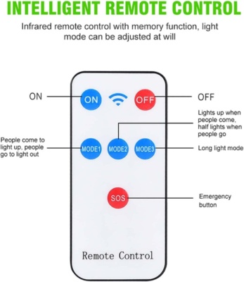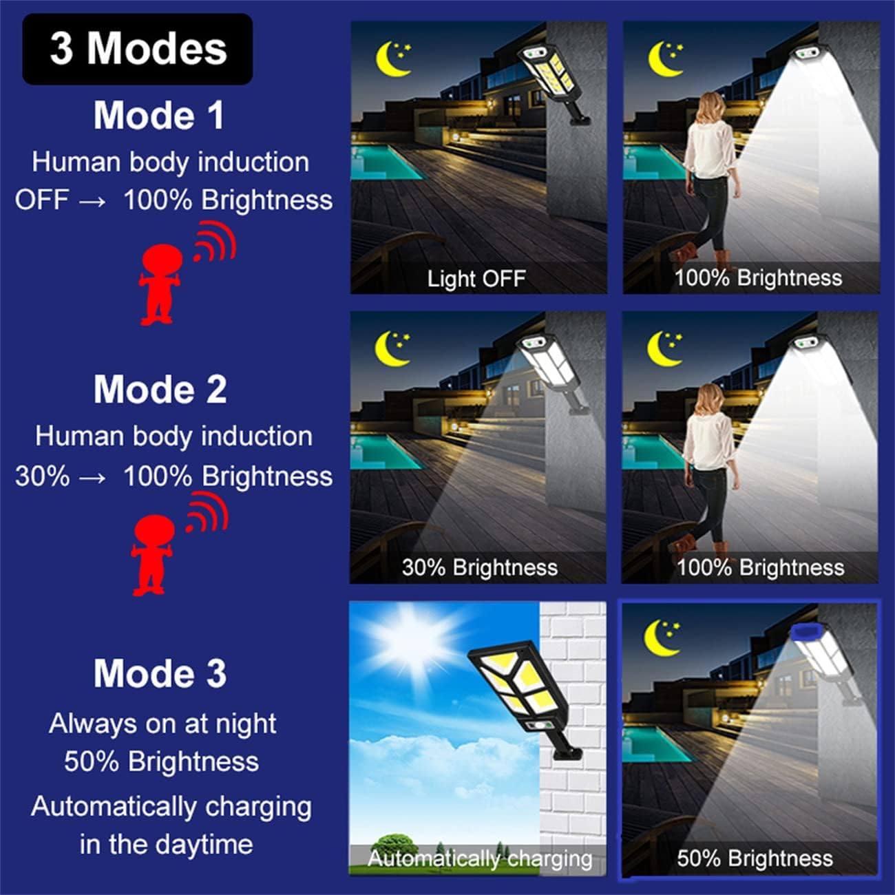 1. Mozgás érzékelésekor 100%-os világítás. A beépített fotocella segítségével a lámpa 100%-os fényerővel kapcsol be, amint széles spektrumú szögben mozgást érzékel. Ha ezután nincs mozgás, a lámpa körülbelül 20 másodperc múlva kikapcsol.