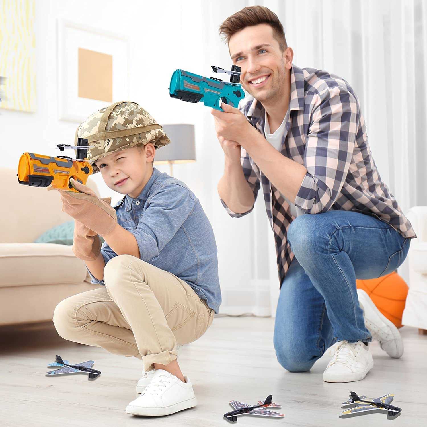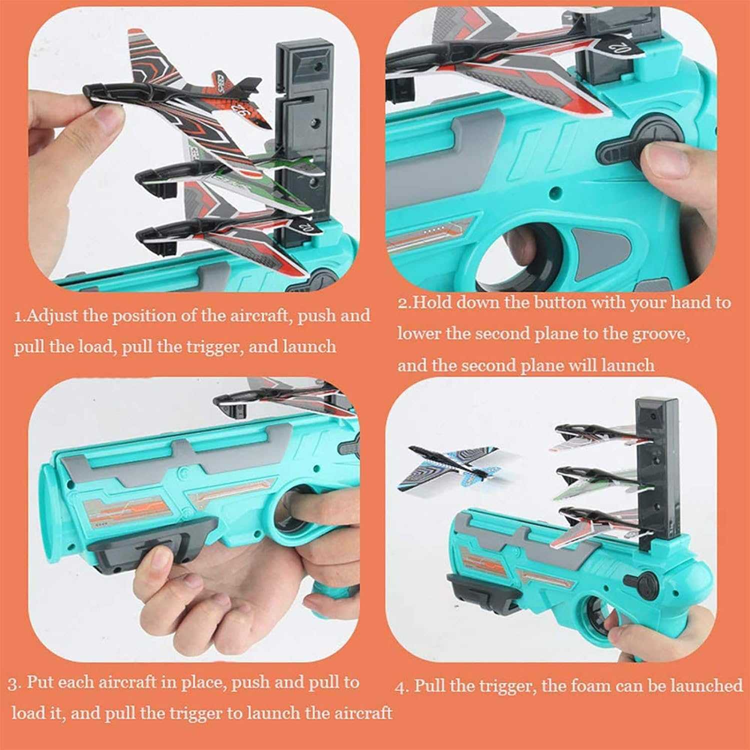 ➡️Csak helyezd bele a repcsiket az erre kialakított részbe ezután, már csak a ravaszt kell meghúznod, hogy elszálljanak. Az indító pisztoly mellett még 4 db repülőgépet is tartalmaz a termék csomagja.