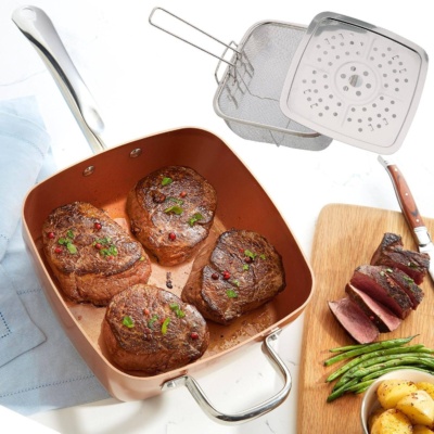 🟠 Praktikus szögletes formájának köszönhetően több étel elfér benne mint egy kerek serpenyőben