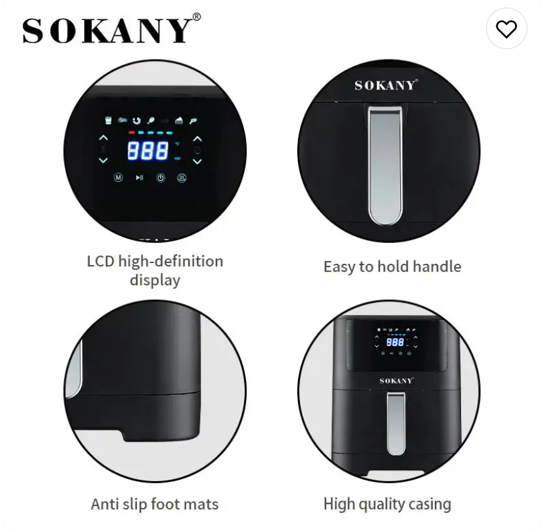 Imádom a SOKANY 8 literes légsütőmet! A nagy kapacitás lehetővé teszi, hogy az egész családnak főzzek egy menetben. Nem csak tágas, de tökéletesen megfőzi az ételeket. Időt takarít meg és egészségesebb alternatívája a mélysütésnek. Nagyon ajánlott!