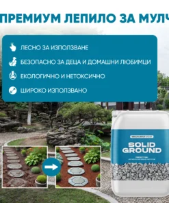 A SOLID GROUND tartósan összeköti a kavicsokat, fakérget és zúzalékot. Nincs több szétszórt kertidíszítő anyag! Tökéletes teraszokhoz, kerti ösvényekhez, fák és virágágyások köré.