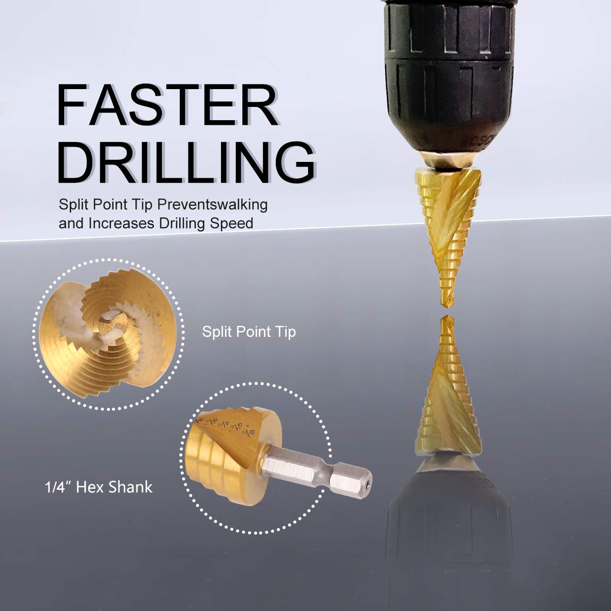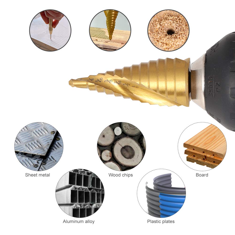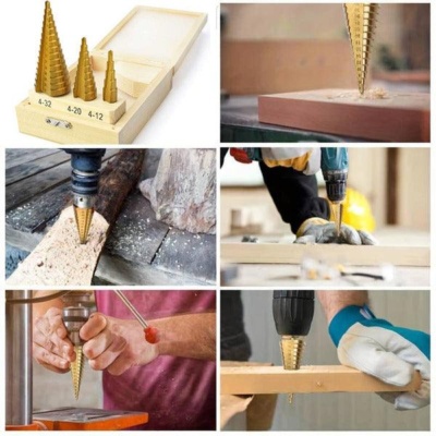 ✨3 lépcsős fúrók: 4-12 mm (9 lépés), 4-20 mm (9 lépés) és 4-30 mm (14 lépés)