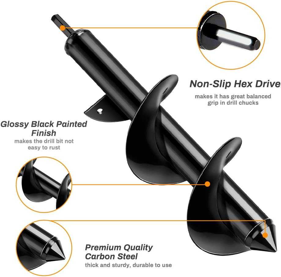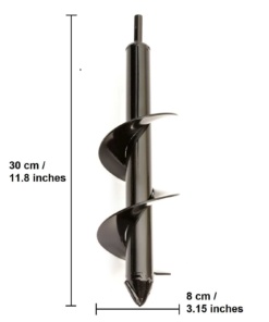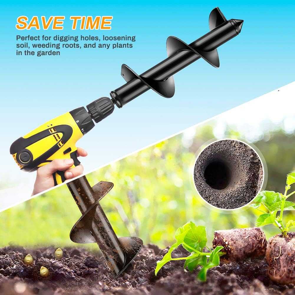 🌱A két kerti fúró bármilyen 3/8″ vagy nagyobb tokmánnyal rendelkező fúróval használható. De jobb, ha 18 V-os vagy nagyobb fúrót használ (vezeték nélküli fúrókhoz legalább 14 V-ot) a jobb élmény és a munkaidő megtakarítása érdekében. Spirálfúró 80 x 300 mm. 80 mm átmérőjű és 300 mm mélységű lyuk gyors fúrására szolgál. Segíthet sok különböző méretű növény termesztésében. és nagyon hasznos egy kis és szép kert kialakításában.