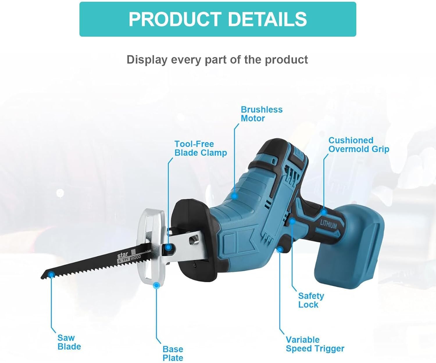 ✅Felhasználóbarát kialakítás – Fokozatmentes fordulatszám-szabályozóval felszerelt, a sebességet a nyomás megnyomásával állíthatja be. Kompakt kialakításának és alacsony, mindössze 1,5 kg-os súlyának köszönhetően ez a dugattyús fűrészakkumulátor egy kézzel is könnyen használható. Az ergonómikus puha markolat fogantyúja növeli a vezérlést és csökkenti a fáradtságot a hosszú munkaidő alatt.