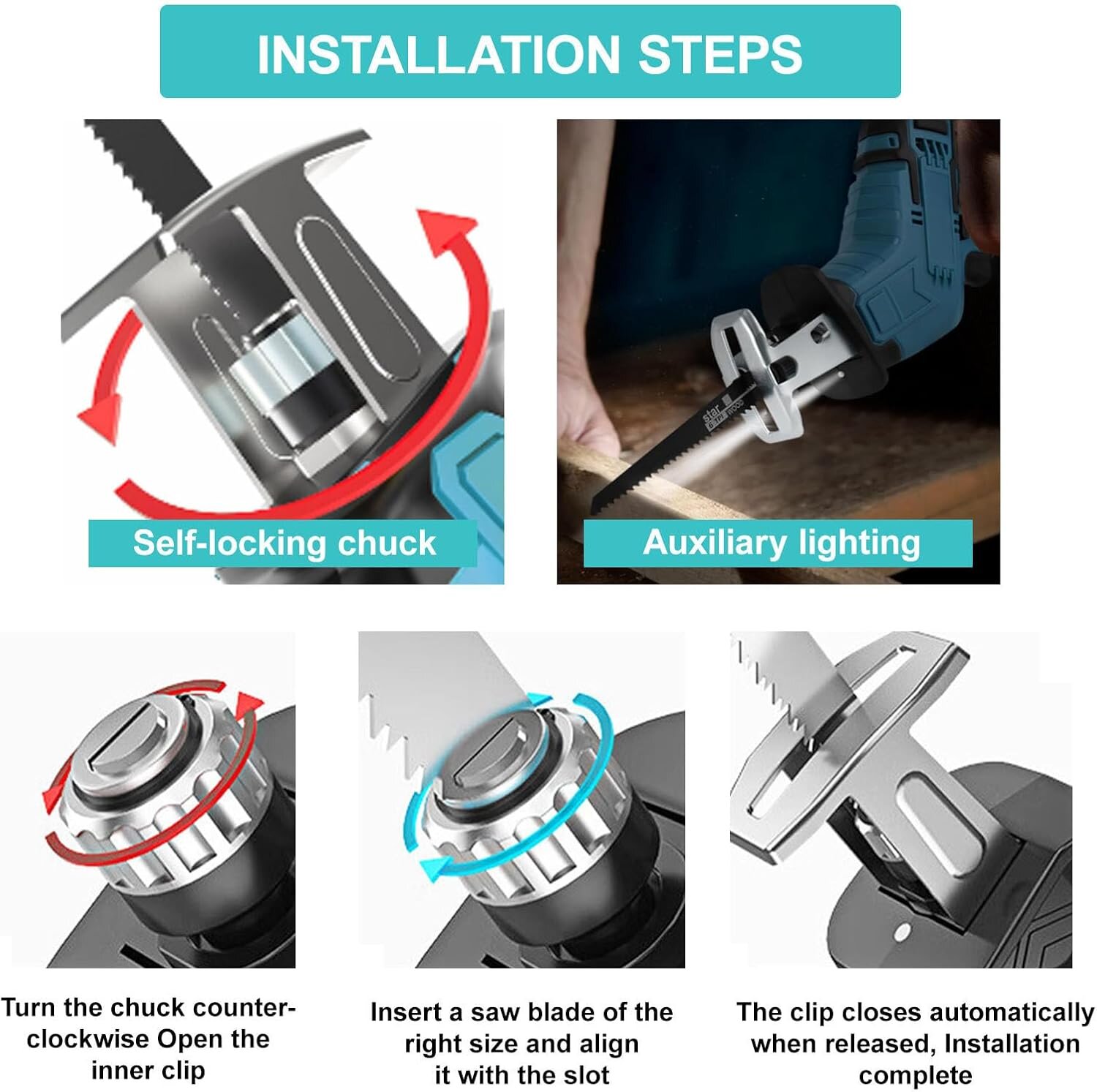 ✅SZERSZÁM NÉLKÜLI FŰRÉSZPENGE CSERÉLÉS – Az önzáró fém tokmány egyedi kialakítása lehetővé teszi a felhasználók számára, hogy további szerszámok nélkül gyorsan cseréljék a fűrészlapot. Még a kezdők is könnyedén cserélhetik a fűrészlapot. A 40 mm-es lökethosszú elektromos orrfűrész hatékony vágást tesz lehetővé, így hagyományos vágásokat, merülővágásokat és lapos vágásokat is végezhet.